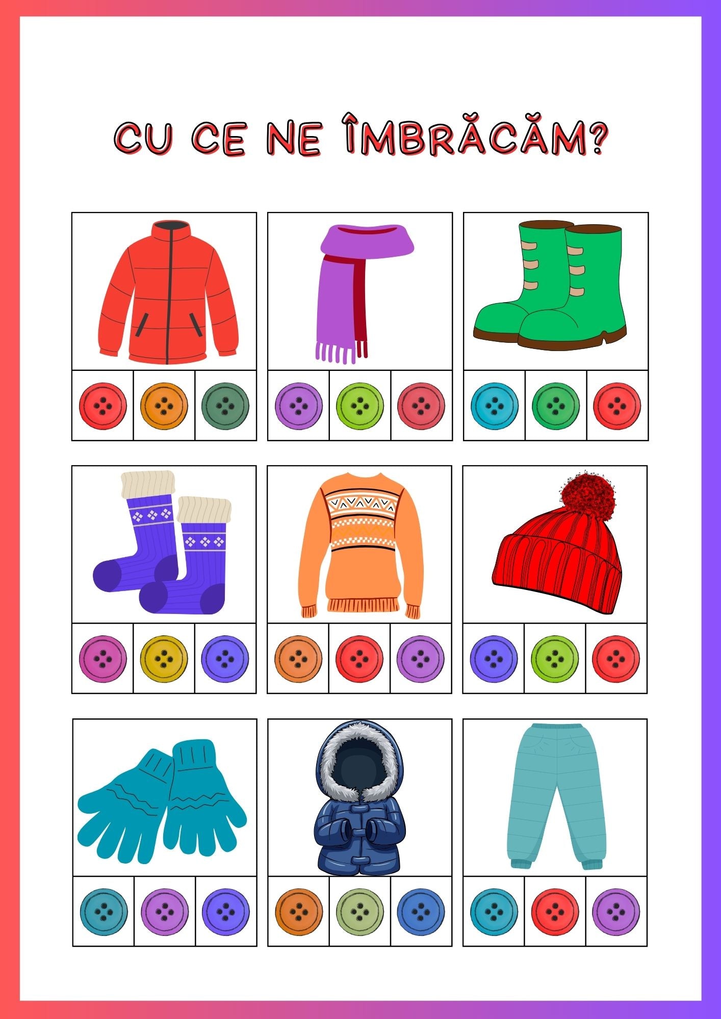 Acest set de 100 fișe de lucru pentru copii de 3–4 ani este creat special pentru dezvoltarea timpurie a copiilor, prin activități simple, clare și atractive, adaptate nivelului preșcolar mic.
