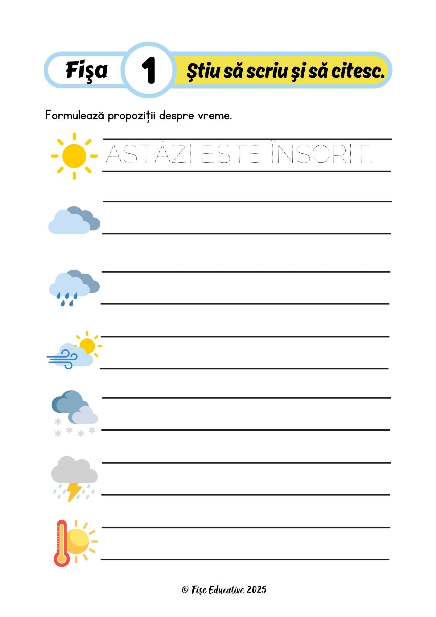 ✏️ 1. Fișe pentru scrierea propozițiilor