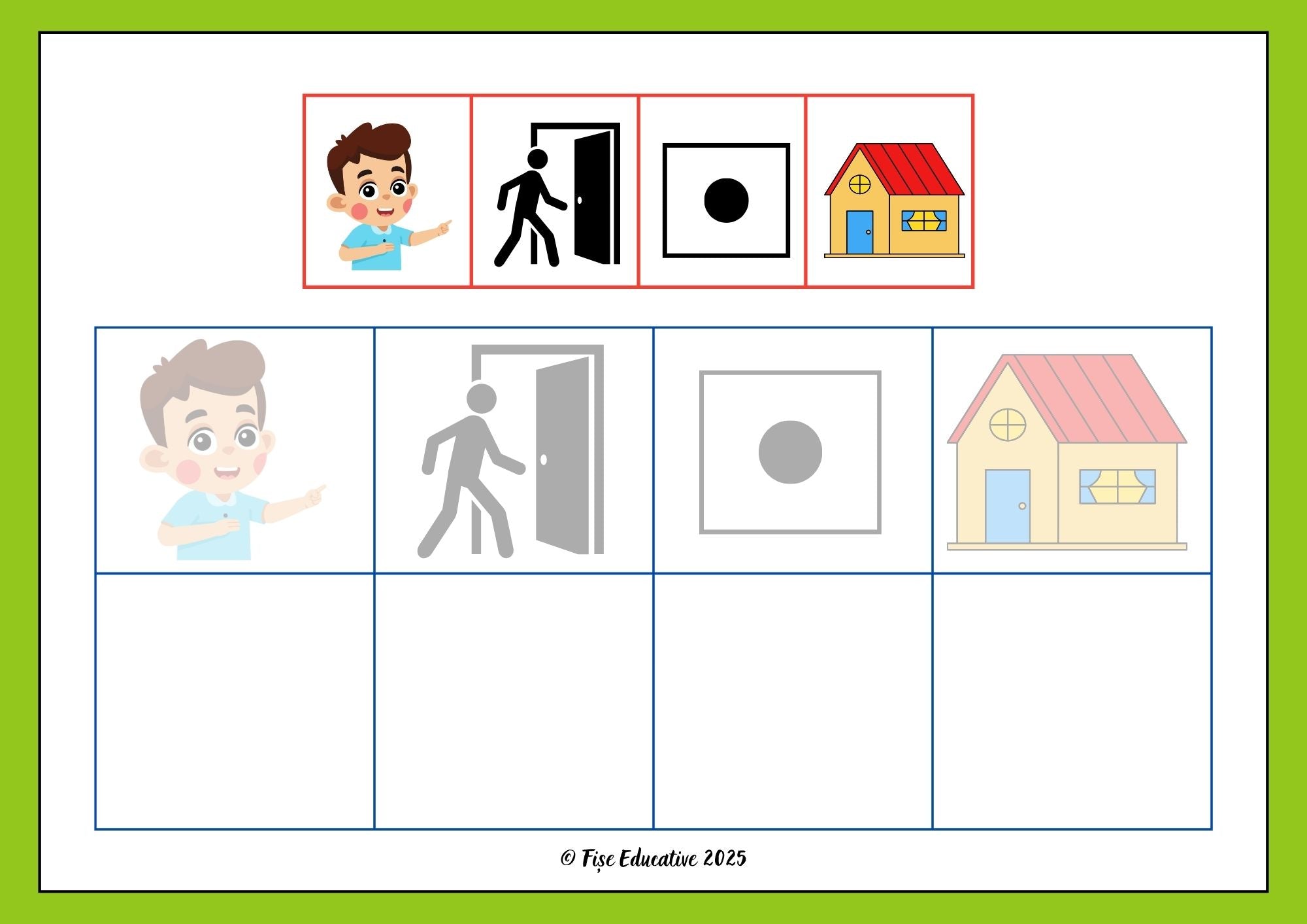 Acest set educațional în format PDF este conceput pentru dezvoltarea limbajului expresiv și pentru exersarea construirii propozițiilor simple, folosind suport vizual clar și structurat.