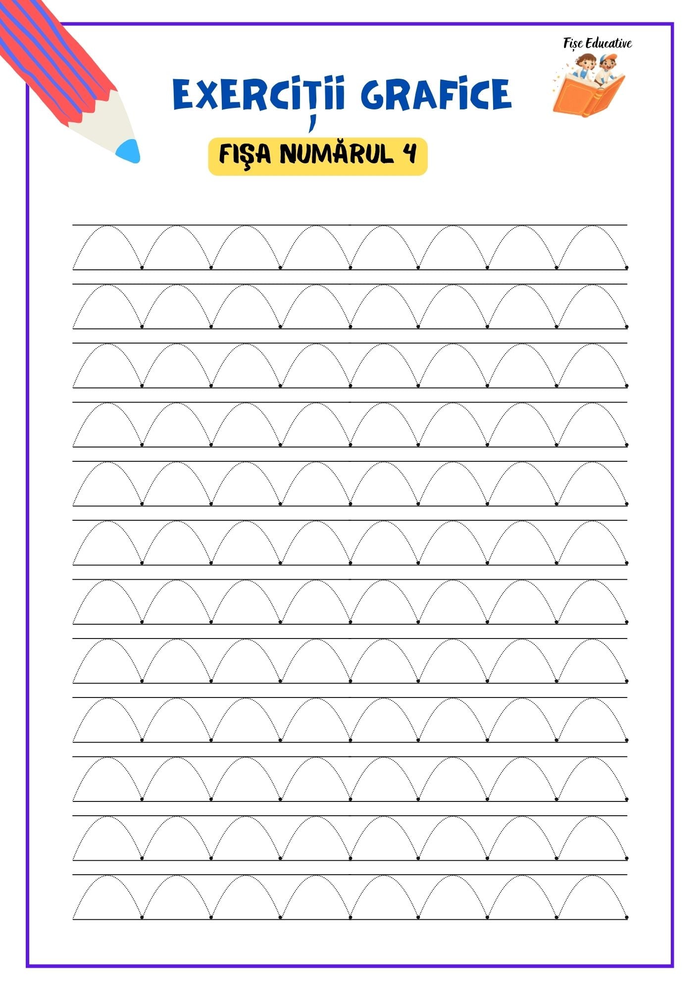 Dacă ai un copil de 4–7 ani și vrei să îl ajuți să își dezvolte motricitatea fină și să se pregătească corect pentru scriere, acest set de exerciții grafice este exact ce ai nevoie.