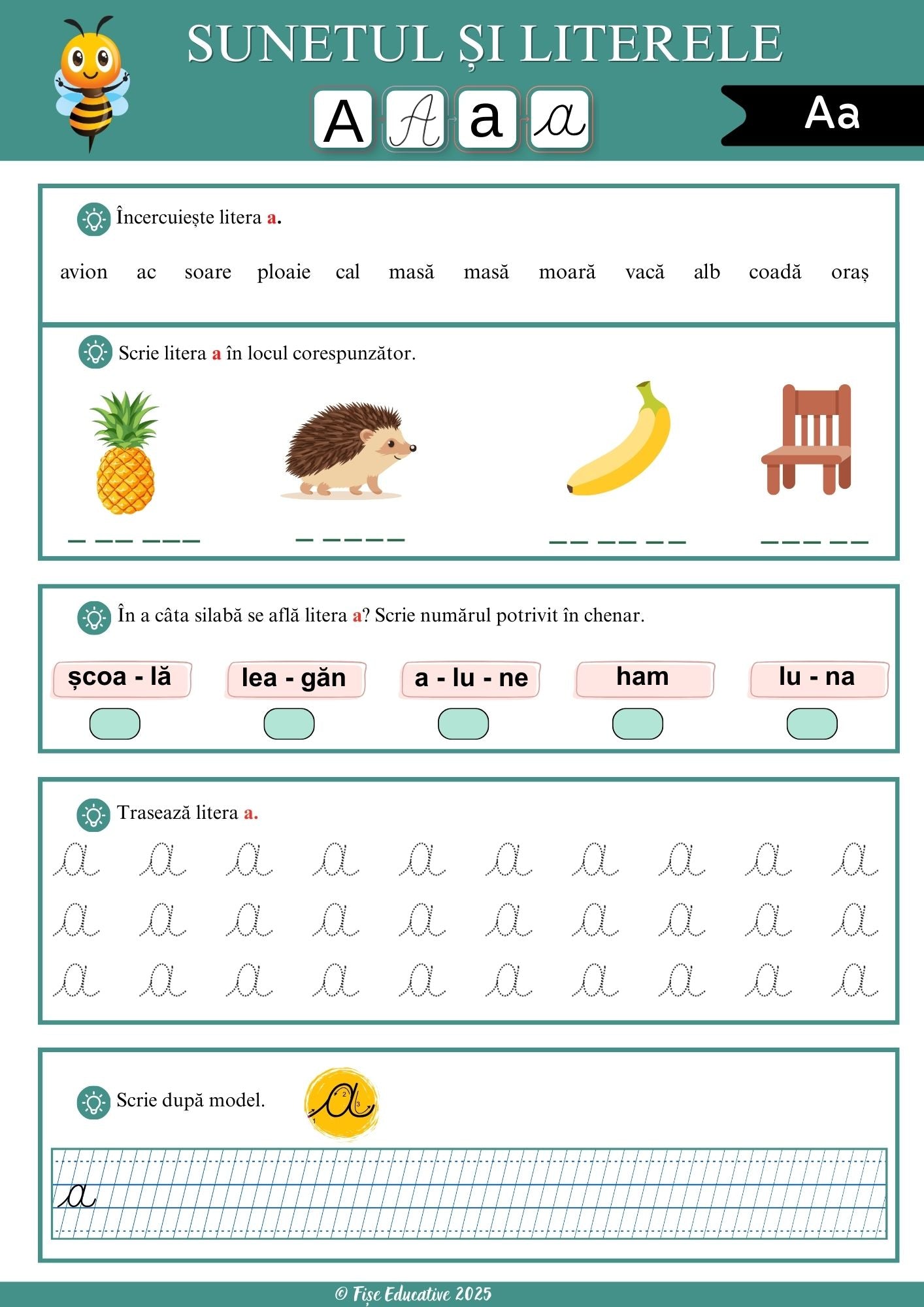 1. Fișe pentru fiecare literă a alfabetului (A–Z)