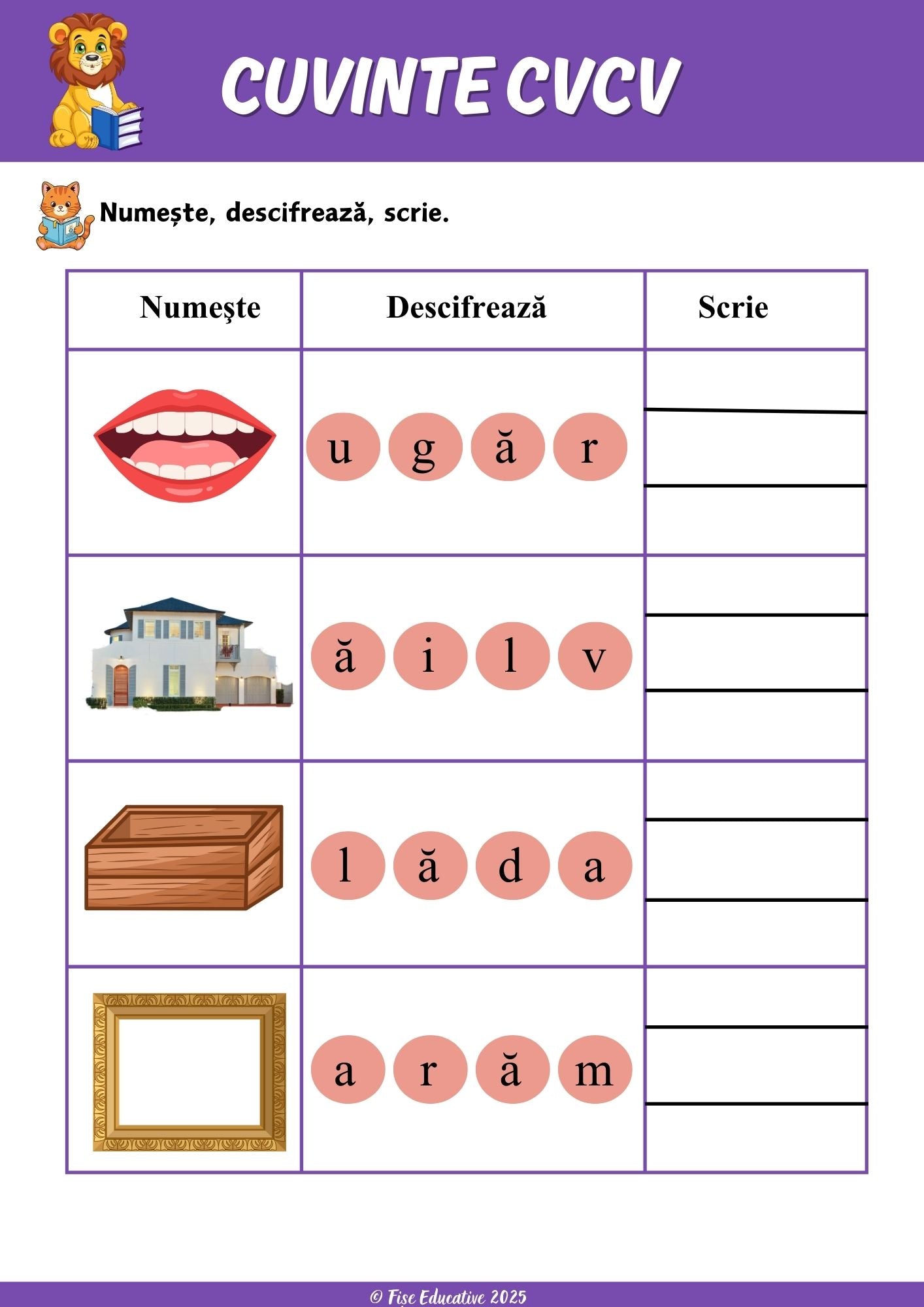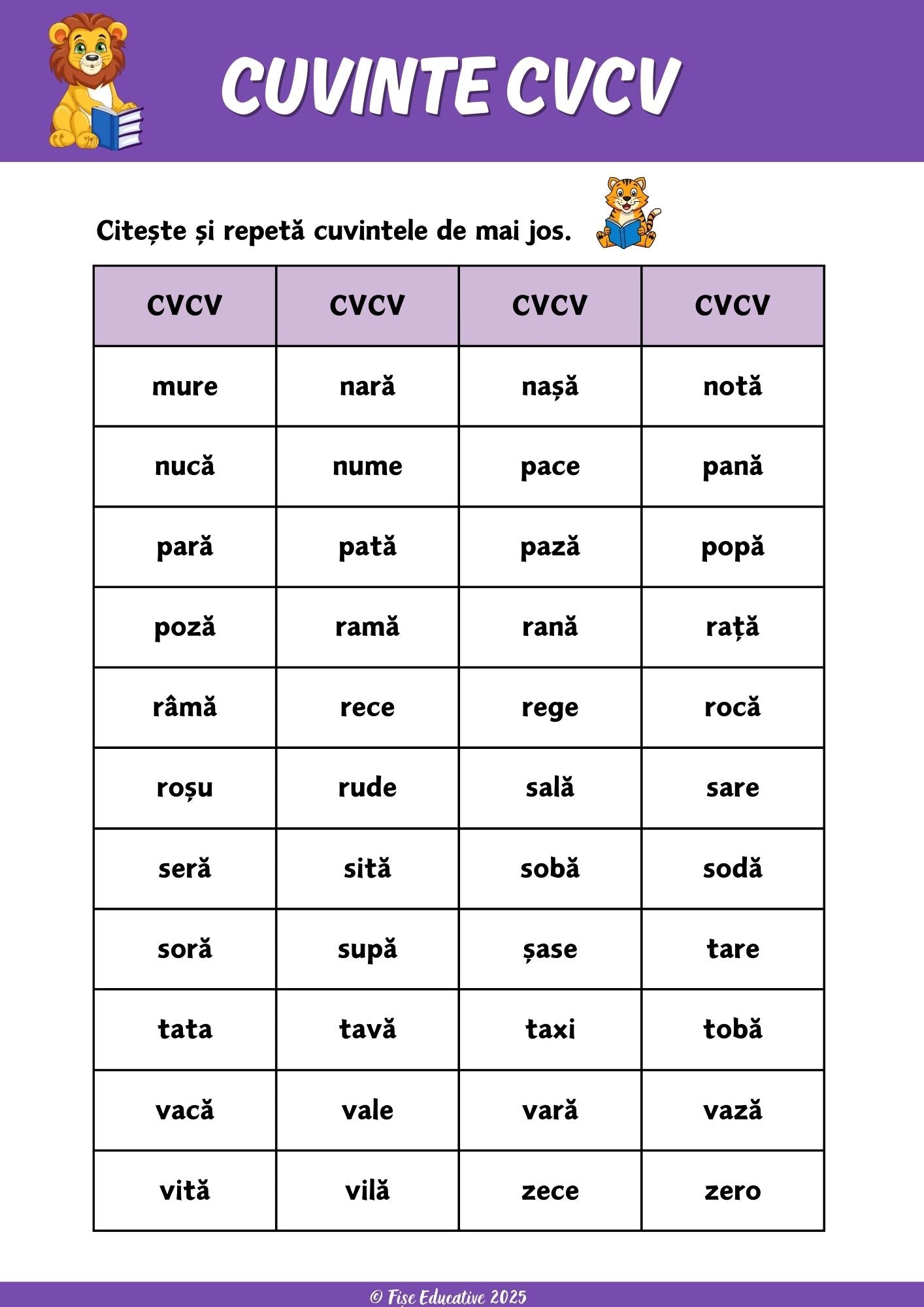 📘 Fișe pentru consolidarea cuvintelor CVCV