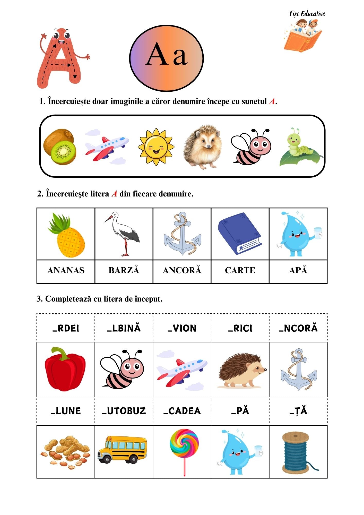 1. Fișe pentru fiecare literă a alfabetului (A–Z)