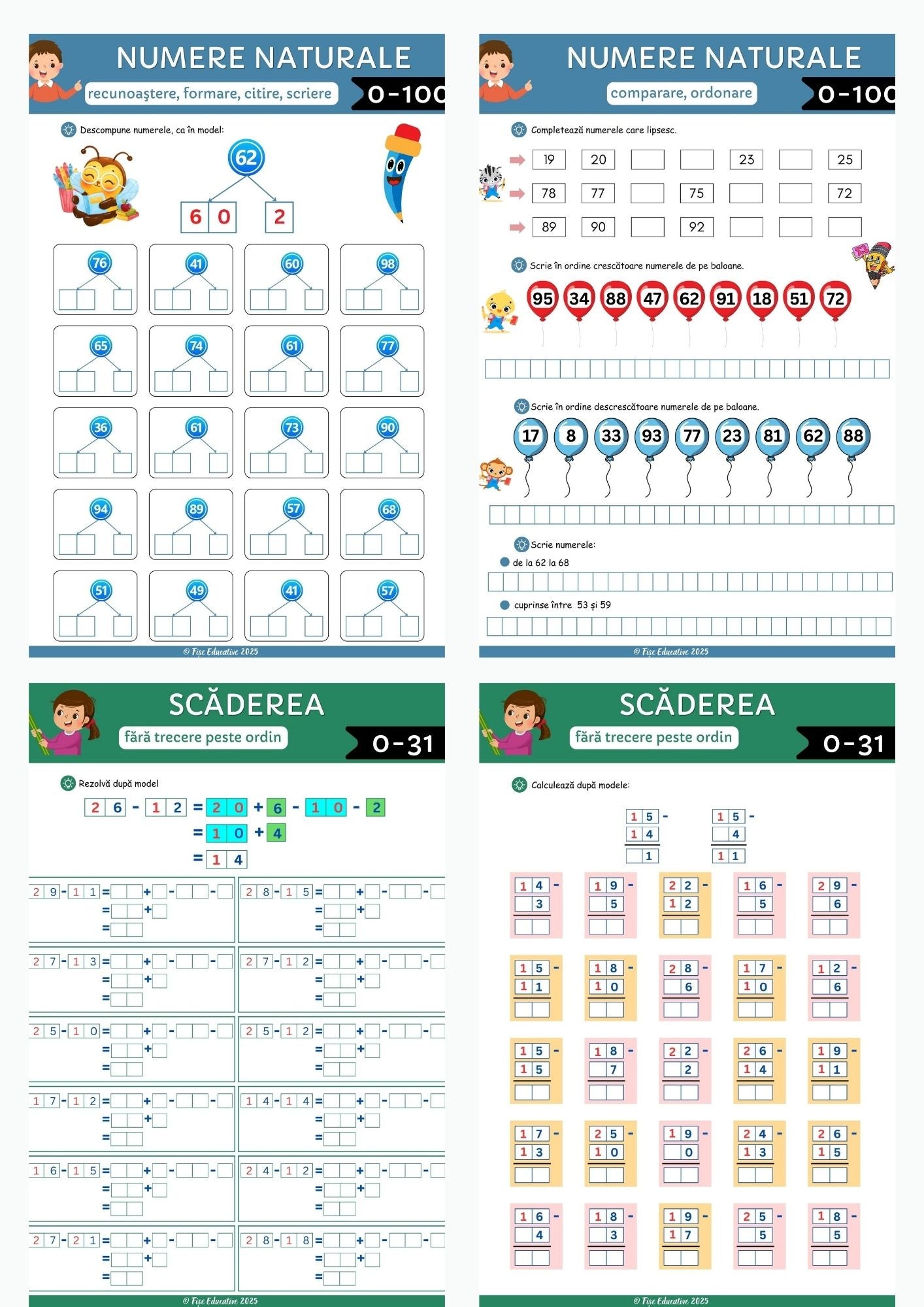 Fișele sunt structurate logic, progresiv și adaptate programei școlare, astfel încât copilul să învețe pas cu pas, fără suprasolicitare.